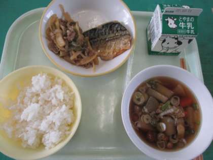 10月5日(水)今日の給食 公開日 2022/10/04 更新日 2022/10/04 池多っ子ゴーゴー 今日のメニューは、ご飯、鯖の塩焼き、マコモダケの炒め物、きのこ汁、牛乳でした。秋の味覚、きのこがいっぱいでした。