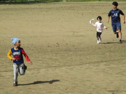子供たちが元気におにごっこをしていました。少しの時間でも大切にしています。