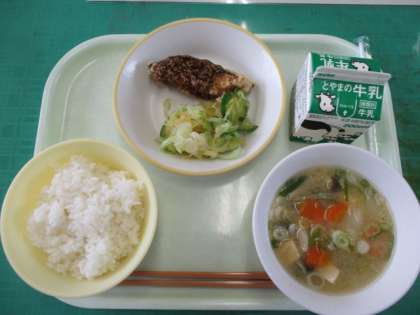 10月12日(水)今日の給食 公開日 2022/10/12 更新日 2022/10/12 池多っ子ゴーゴー 今日のメニューは、ご飯、ふくらぎのごまだれがけ、あわせ和え、五目味噌汁、牛乳でした。シャキシャキ感が味わえるおいしさでした。