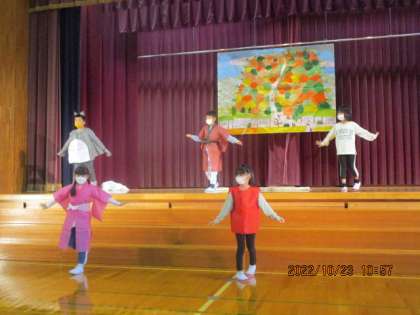 3年生は国語科で学習した「三年とうげ」の音読劇を行いました。一人一人が自分の力を出し切って演じていました。