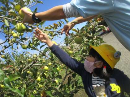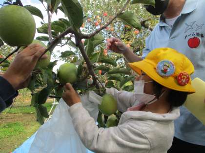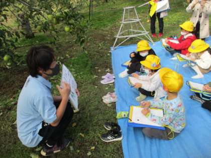 池多りんご広め隊キッズとして、りんごの見学に行きました。実際にりんごを採らせていただき、大喜びの子供たちです。