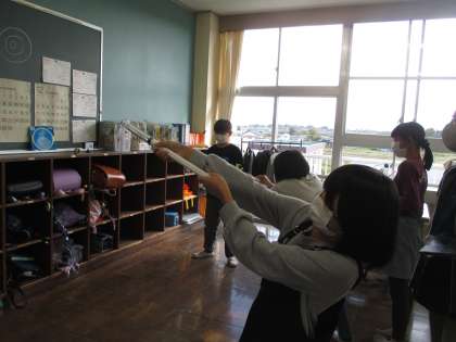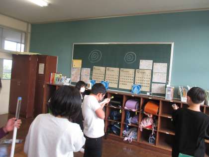 4年生は「とじ込めた空気と水」の学習をしています。今日は空気鉄砲で的当てをしました。