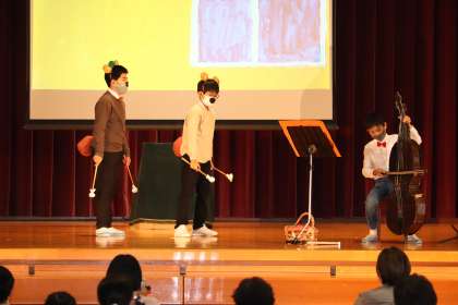 「セロ弾きのゴーシュ」では、ゴーシュの気持ちの変化や動物の動作を工夫して演じました。学習発表会を通して、一緒に過ごしてきた仲間の大切さを実感することができました。