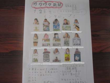 今日10月27日から11月9日まで読書週間です。情報委員が作成した新聞には1、2年生が選んだ“好きな本”が紹介されています。とてもおもしろそうな本がそろっています。