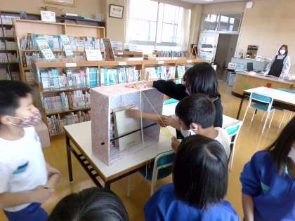 様々な本に出会ってほしいと、本のくじを作り、全校児童が引いています。普段選んでいない本も読んで、本をもっと好きになってほしいと思います。