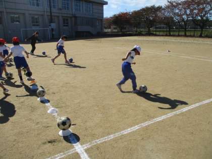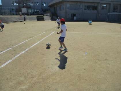 今日から「ボールけり」の学習が始まりました。ボールを自分の陣地に運ぶあそびをしたりキックベースをしたりしてボールけりに慣れ親しみました。
