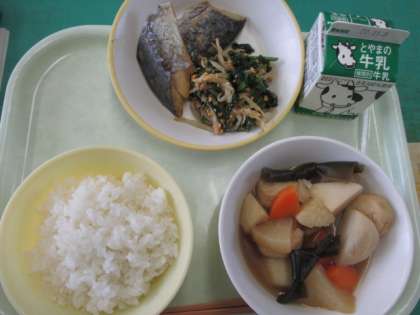 11月1日(火)今日の給食 公開日 2022/11/01 更新日 2022/11/01 池多っ子ゴーゴー 今日のメニューは、ご飯、さわらのゆうあん焼き、いり大豆和え、おでん、牛乳でした。ほかほかのおでんがおいしい季節になりました。