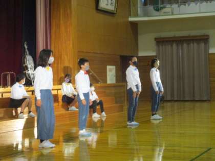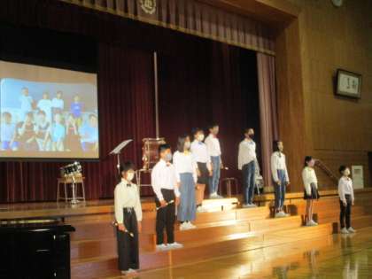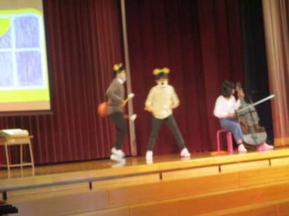 さすが高学年です。台詞や道具、音、衣装等で、テーマを表現しようと努力を重ねました。2学年合同で、劇を立派につくり上げています。フィナーレは、感動的なメッセージで締めくくられました。