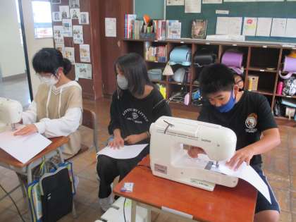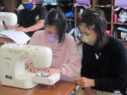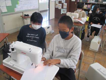 ミシンの使い方を学習しました。5年生にとっては初めてのミシンの学習。6年生にとっては、昨年度の復習から始まりました。ミシンの持ち方、針の指し方、下糸・上糸のかけ方、縫い方などをやってみました。6年生が丁寧に5年生に教えていました。