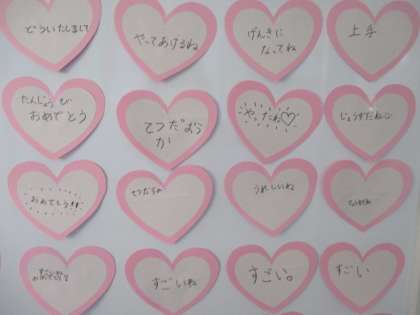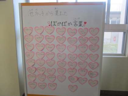 いつの間にか、掲示板がたくさんのぽかぽか言葉であふれていました。素敵な言葉は、心を温かくしてくれますね。