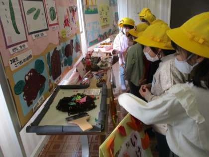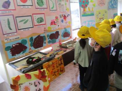 池多地区の作品展に行ってきました。図工の時間に描いた絵等を見学しました。他にも保育所や地域の方の作品を子供たちは興味深く見ていました。