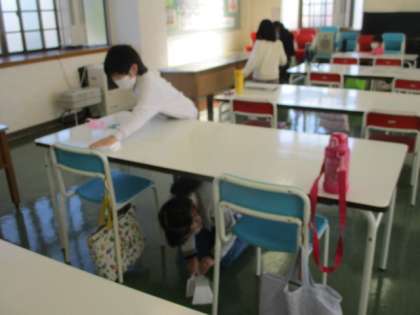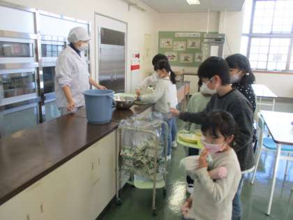 給食後、子供たちは感謝の気持ちを表して、ランチルームを後にします。