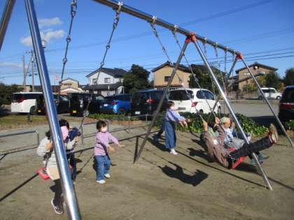 今日は天気がよく、秋風を感じながらブランコにのって楽しく過ごしました。
