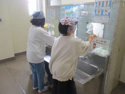 毎日きれいに整えることで、気持ちよく生活できます。みんなの手が届かない場所は、先生がきれいにしています。みんなが一生懸命に取り組んでいます。