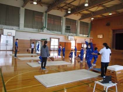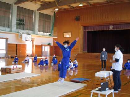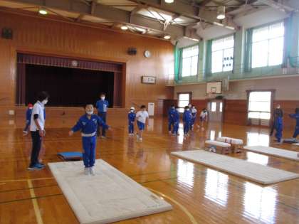 今日は体育指導員の方に、跳び箱の指導を受けました。細かく段階を追って練習をすることで、開脚跳びから閉脚跳びまで体験することができました。初めて挑戦する閉脚跳びでは、跳び越せる子は少なかったですが、とてもうれしそうでした。