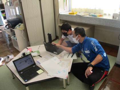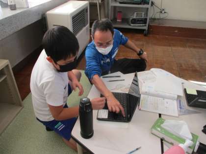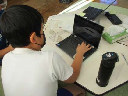 平行な直線を引く方法を学んでいます。正確に引くことができるよう、真剣にこつをつかんでいました。