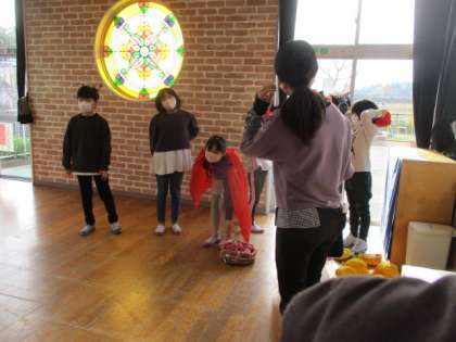 池多保育所を訪問しました。池多りんごのよさを広めます。練習や準備の成果を出そうと、意気込んでいます。