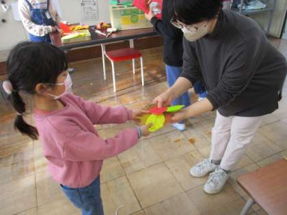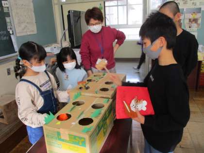 昨日は、1、2年生で企画した秋祭りを開催しました。3〜6年生、お世話になっている先生方をご招待しました。お店は「きのこたたき」「秋のつりぼり」「秋のカードゲーム」の3つを開きました。