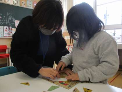 パズルを作りました。友達の作ったパズルに挑戦し合っています。