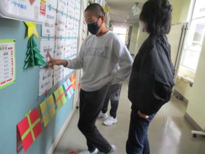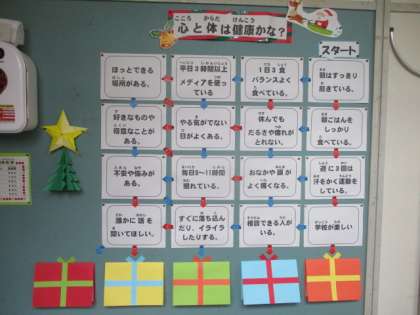 12月バージョンになりました。子供たちが自分はどうかな?と興味をもって掲示を見つめています。