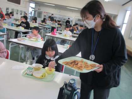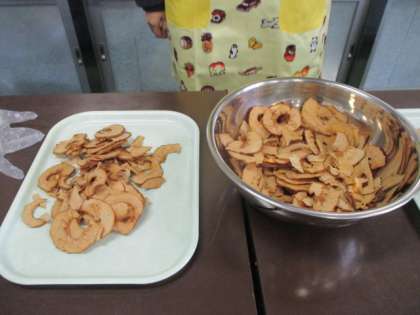 「池多りんご広め隊」の学習を進める中、りんご農家さんより「りんごチップス」をいただきました。とてもぱりぱりしていて、りんごの甘みが強く感じられます。子供たちは配られたチップスを大切に味わっていました。ありがとうございました。
