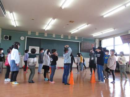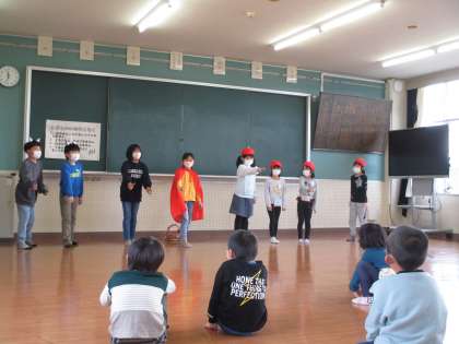 「ちがいチーム」は、1・2年生に自分たちが学習をして学んだことを劇で伝えたり、チームを作り、「池多りんごじゃんけん」をしたりしました。終わった後の振り返りでは、池多りんごのよさをみんなに分かりやすく伝えることができたと手応えを感じた様子でした。