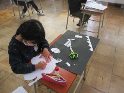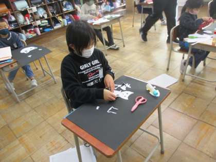2年生の図画工作科では、白と黒のコントラストを生かした作品作りに取り組んでいます。