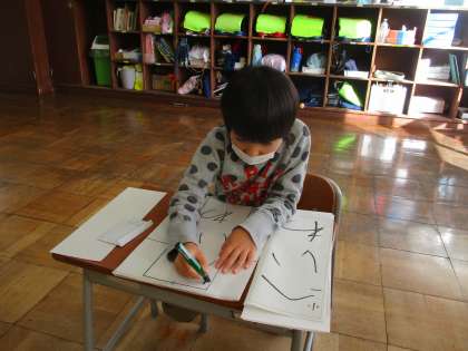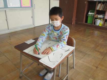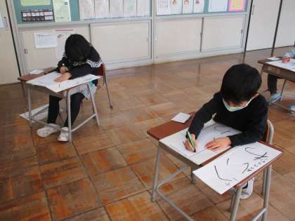 硬筆墨を使って書き初めの練習をしています。前回確認したポイントを思い出しながら丁寧に書いていました。