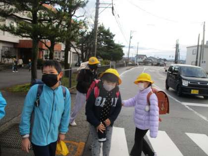 1週間も最終日となりました。横断歩道を渡りきった後、ドライバーさんたちに礼儀正しくお辞儀をしています。温かい気持ちになります。