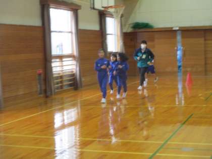 今日も体育館を一人一人のペースで走ります。