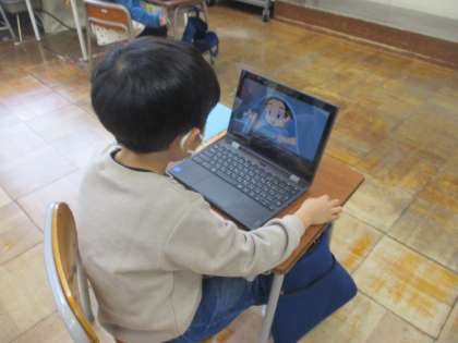 ゲームや動画のやり過ぎについて学習しています。〇×クイズをしたり、クロムブックで動画を見たりしました。