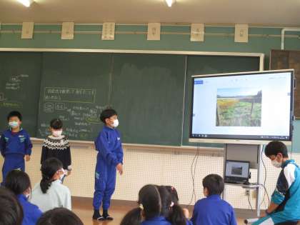 昨日3・4年生で初めて行った白鳥探検隊で発見したことを発表し合いました。