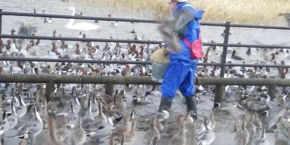 カモたちは、えさに大喜びの様子で群がっていました。