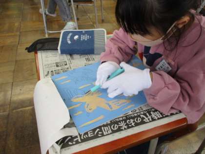 慎重に彫り進めていました。安全に彫刻刀を使っていて感心です。