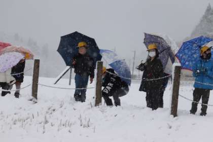 子供たちの姿を見て、白鳥たちはそばに寄ってきました。様子をうかがっているようです。