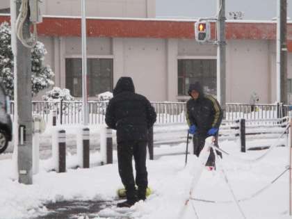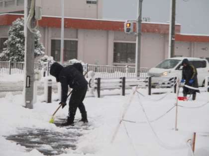 子供たちの安全な通学路を確保しようと、早くから職員が除雪作業を行いました。