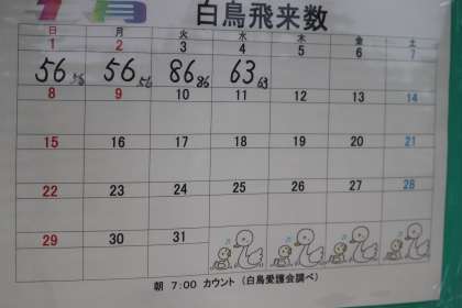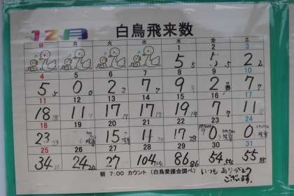 12月28日(水)には、100羽を超える白鳥がいたようです。飛び立った後も、白鳥が優雅に泳いでいます。