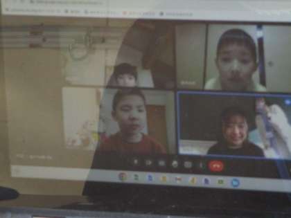 生活のリズムはどうかなという担任の先生の問いかけに、うれしそうに応えている1年生。また、画面に並んでいる友達にも進んで「どう?」と対話を楽しむ様子が見られ、さすがです。新学期に向かって、気持ちを少しずつ切り替えていこうとする頼もしい1年生でした。