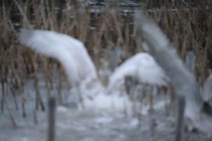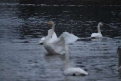白鳥たちは、あちらこちらで元気に羽を広げていました。