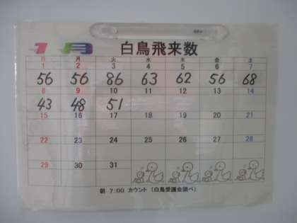 1月10日(火)白鳥の飛来数 公開日 2023/01/10 更新日 2023/01/10 白鳥情報 今年に入ってからも、愛護会の方が毎日の飛来数をしっかり記録してくださっています。ありがとうございます。