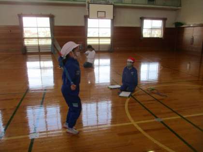 今日の体育の学習では、なわとびのれんしゅうをしました。前とび、後ろとび、かけ足とびなど、2人1組になり回数を数えて記録に挑戦しました。