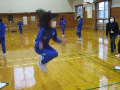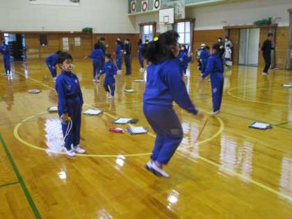 うれしそうにジャンプしています。友達の動きを互いに見合っています。