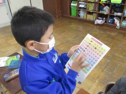 数の表を見て、並び方のきまりを見付けています。友達と問題を出し合って、見付けたきまりがあっているか確認しました。