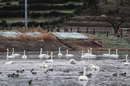 今朝7時10分現在の気温は0度で、大変冷え込んでいます。白鳥66羽の飛来が確認されています。