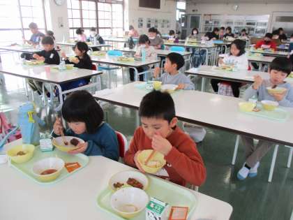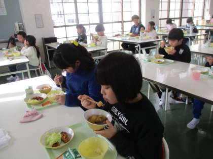 「今日の給食で一番美好きなのは?」と質問したところ、第1位はなんと大根でした。第2位が魚、第3位がキャベツでした。野菜好きな池多っ子です。