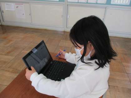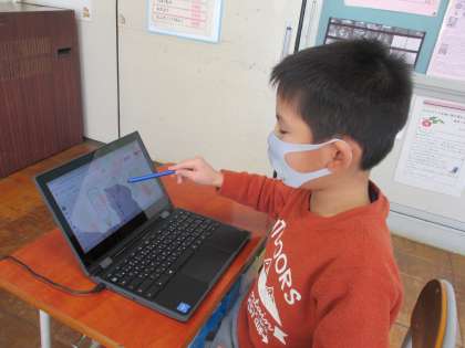 クロムブックを使って、練習問題をしています。間に入るひらがなは何かをじっくり考えていました。