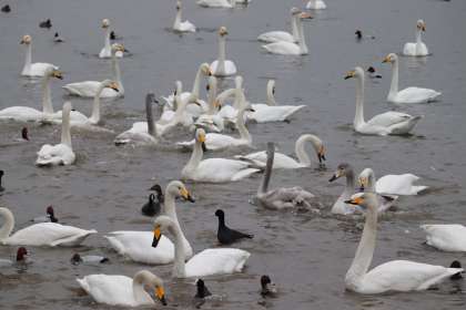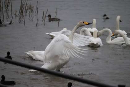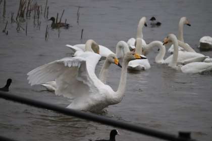 7時10分現在、気温は4度で、雨が降っています。白鳥は114羽で、今年度最高の飛来数が確認されています。