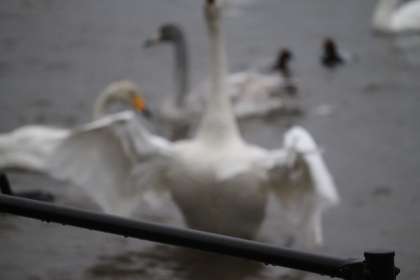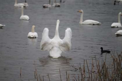 今朝の白鳥たちは仲間の数が多いせいか、とても動きが活発です。