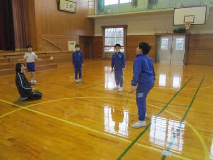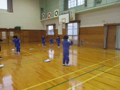 今朝は、白鳥探検隊の活動があるため、1〜4年生のみの短縄練習でした。