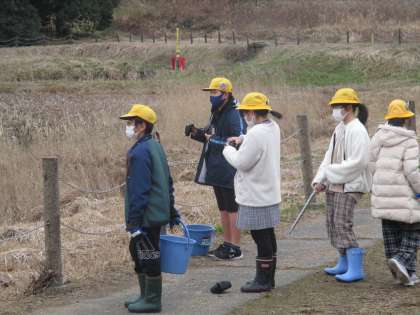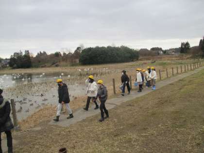 田尻池には、たくさんの白鳥とカモが泳いでいました。パンフレットの補充をした後、池の周辺のゴミ拾いと白鳥の観察をしました。